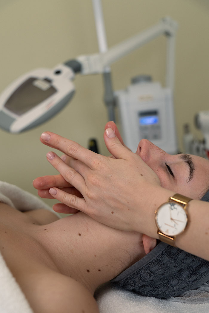 Nega je namenjena tako ženskam kot tudi moškim. Pri negi obraza se posvetimo vsem trem ciljnim predelom (obraz, vrat in dekolte). Nega obraza zajema površinsko čiščenje, piling kože, nadaljujemo s segrevanjem kože s pomočjo vapozona (pare), globinskim čiščenjem in uporabo visoke frekvence. Sledi oblikovanje obrvi in sproščujoča masaža obraza, vratu, dekolteja in zatilja. Po masaži nanesemo hialuronski serum/gel glede na tip kože. Nego obraza zaključimo z masko za obraz in zaključno dnevno kremo.